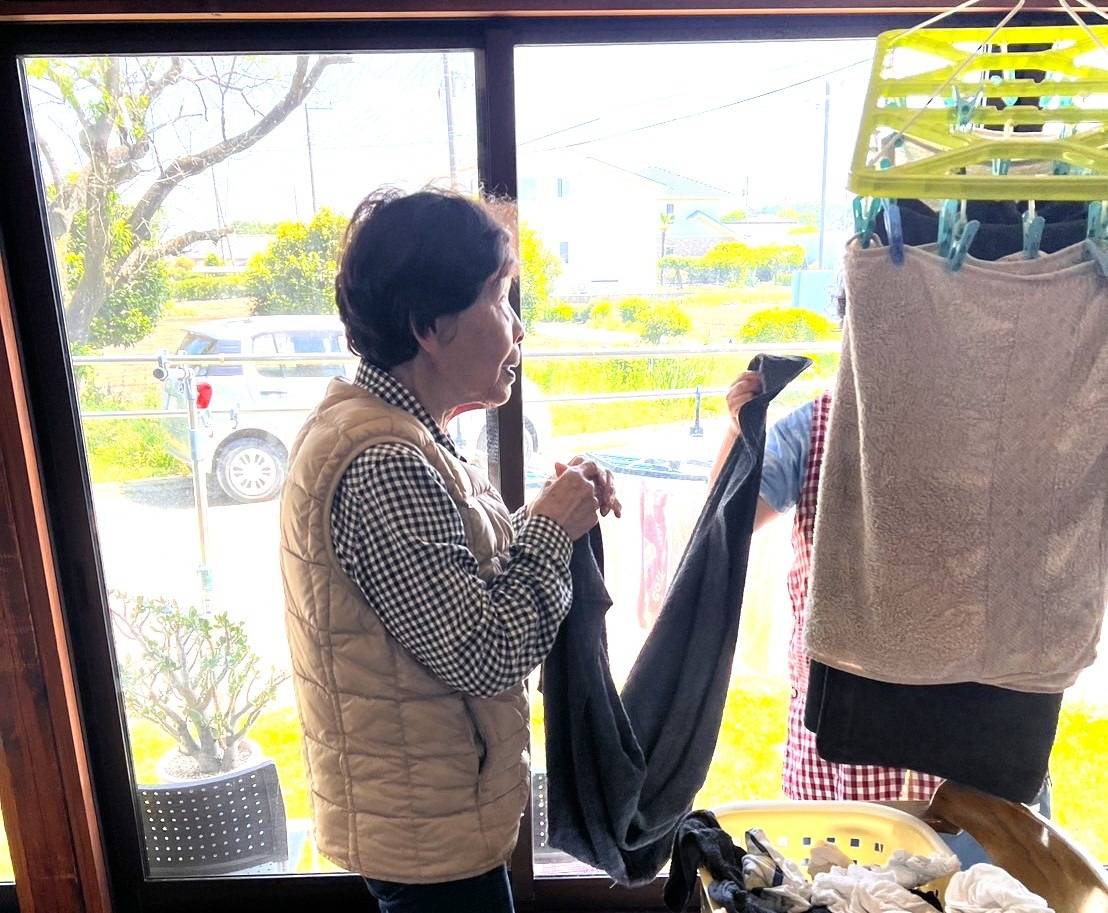 ちゃのみの家 2025/05/29 役割を持って生きる力に 出来る事は手伝うよ 「私、干すの好きだから」と洗濯物を干したり、たたんだり、いつも手伝ってくれるNさん。 また、力仕事は任せてとWさん。届いた荷物を倉庫まで運んでくれます。皆さんいつも本当に助かります。