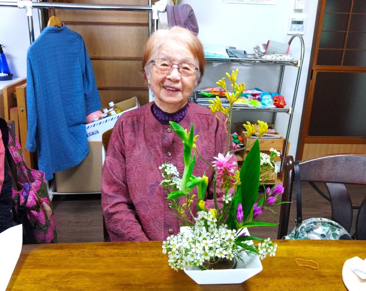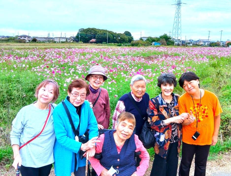 ちゃのみサロン 2025/10/16 お花三昧 生け花の後はコスモス畑へ・・・ 毎月一回ある生け花☆先生に教わりながら上手に生けられました♪ 生け花の後は少しずつ咲き始めた奥富のコスモス畑へ☆ コスモスをバックに記念撮影☆ 「来週はコスモス畑の中を歩きたいね」と話しながら栗を買いに栗園へ♪盛り沢山の半日でした✨