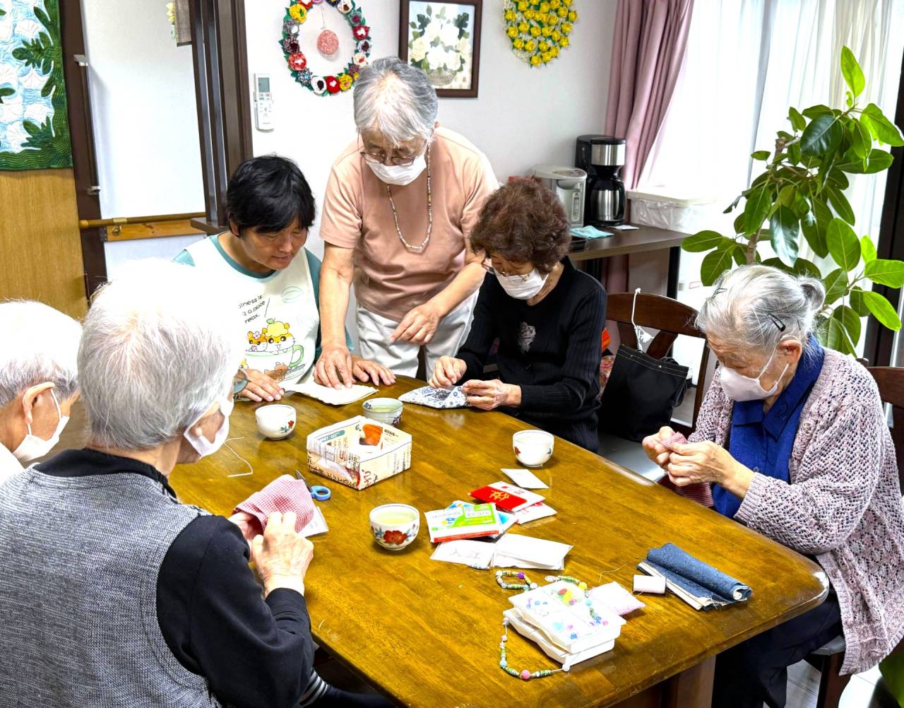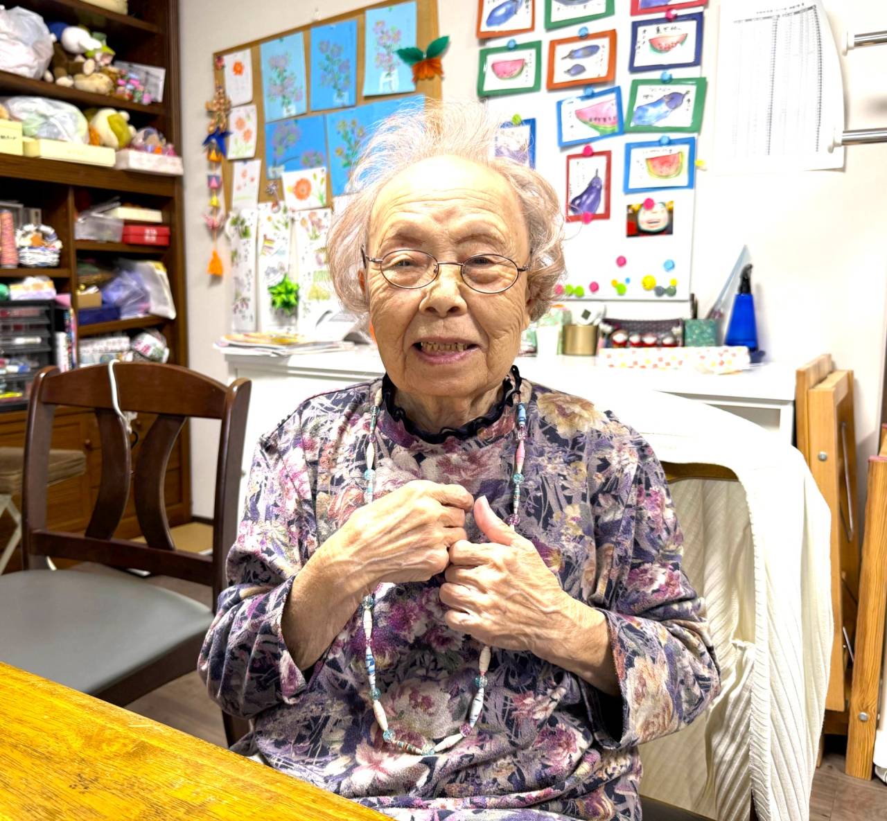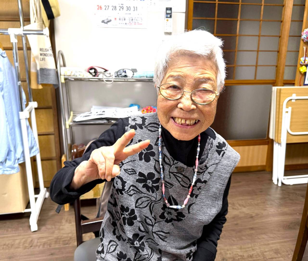 ちゃのみサロン 2025/10/18 ネックレス作り 天気の悪い日は・・・ 先週の土曜日。天気が悪かったので室内でネックレス作り✨ 紐に色とりどりのビーズを通して世界に一つだけのネックレスを✨ 色んなカラーバリエーションを考えて♪青い洋服にピッタリ✨ 上手く出来たと喜びのピース🌟